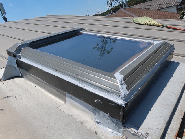 工事後、お客様から「天窓の雨漏りがピタッと止まり、バケツが不要になった」との感想をいただきました。