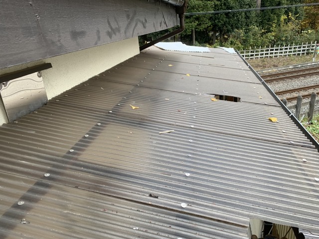 既存のポリカ波板を取り外し、新しいものに交換しました。