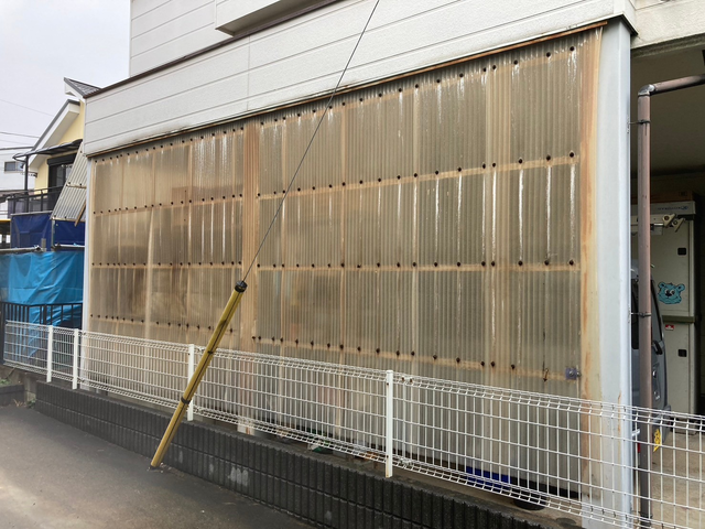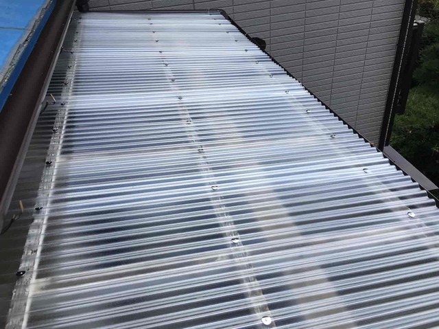 お客様からも、以前よりも丈夫そうなポリカ波板に交換したことによって安心感があるとのお声をいただきました。