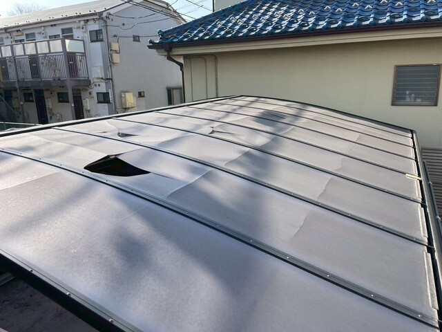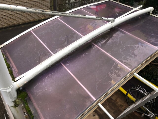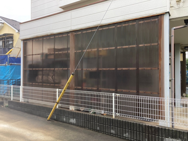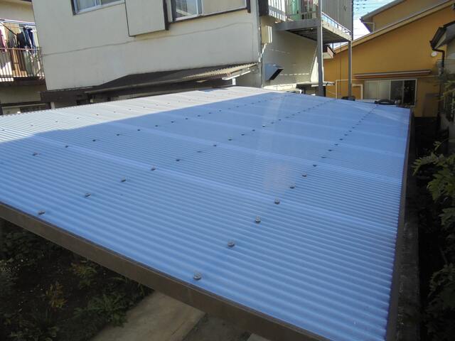 既存のアクリル板の撤去と新たにポリカ板の屋根を設置しました。