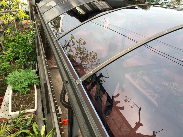 既存のアクリル板を取り外し、新しくポリカ屋根を設置しました。