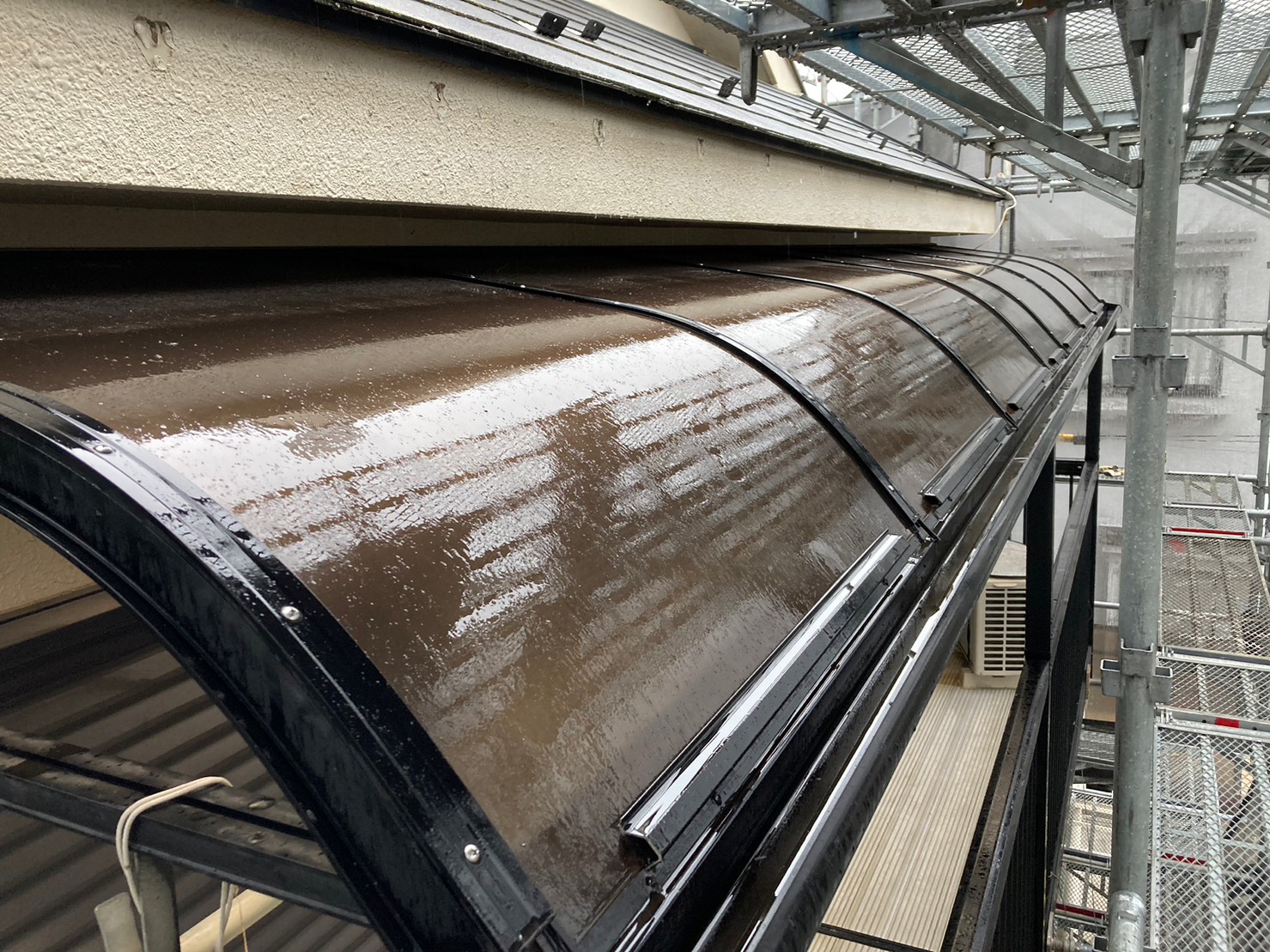 - 既存のアクリル板を撤去し、新規のポリカーボネイト屋根を設置