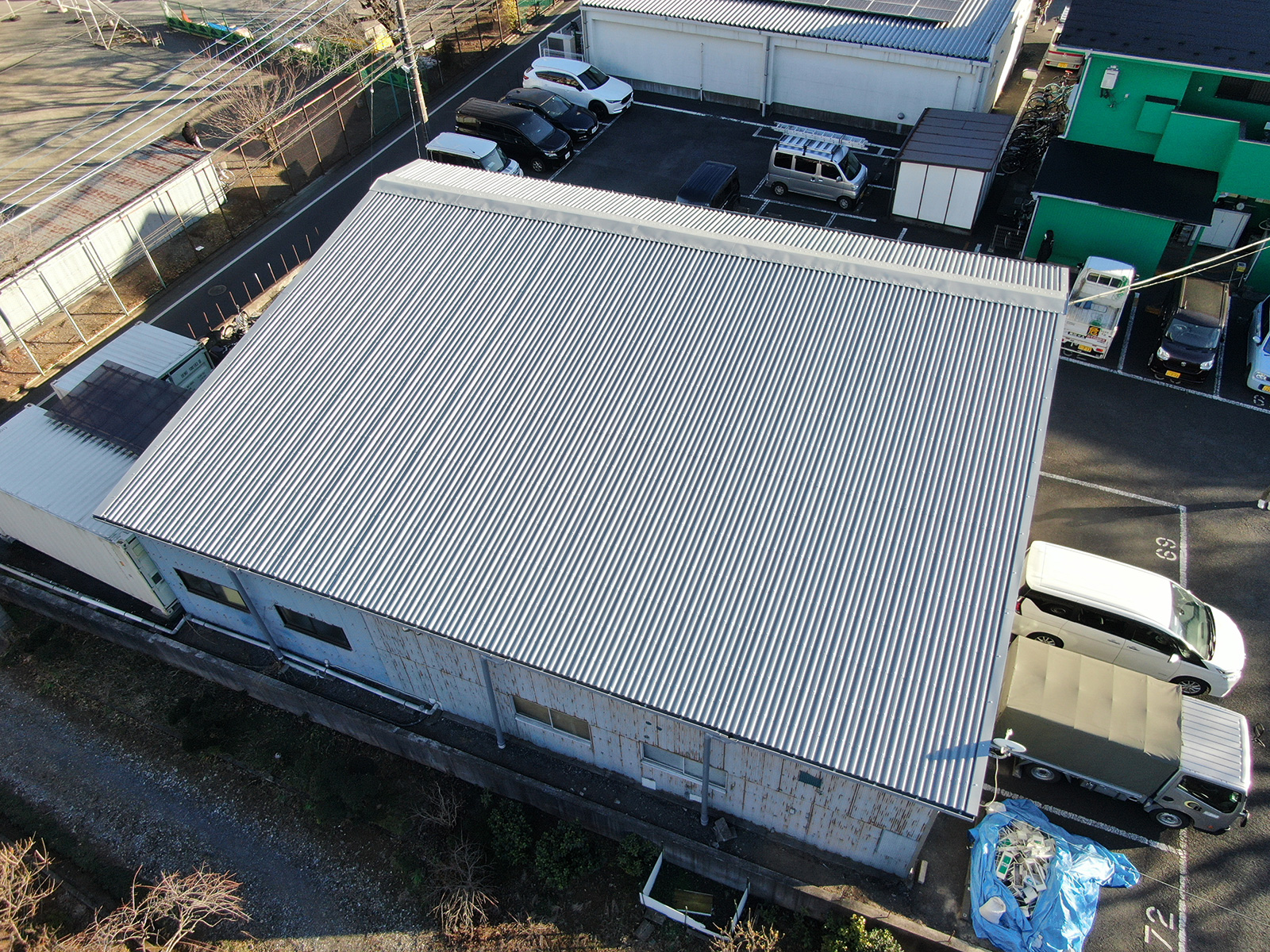 - アスベストが混入しているスレート屋根が有害性があるということで心配になり、カバー工法ができないかと相談をいただいた。下地の状態は良いので、ガルバリウム鋼板でカバー工法をご提案。