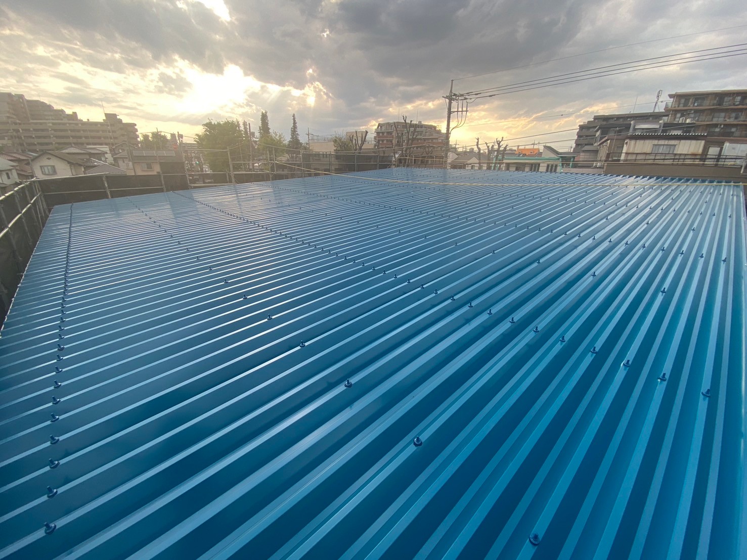 - ボルト折板屋根を新規の折板屋根にカバー工法