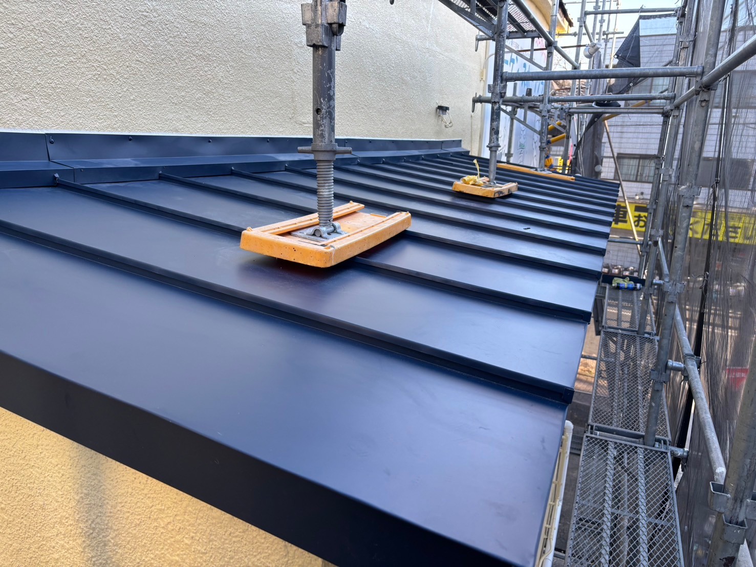 - 瓦棒屋根にラーチ下地をし、新規の瓦棒屋根に葺き替え