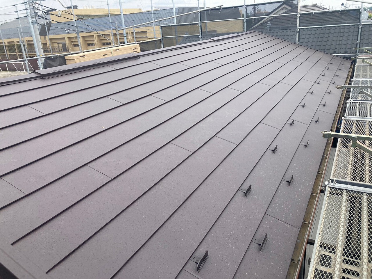 - 雨漏りが続いていて不安だったので、地元で評判のウチノ板金さんに相談しました。どうせ直すならと、重たい瓦屋根から軽くて丈夫な金属屋根に替えてもらうことに。さらに、夏の暑さ対策としてアルミ遮熱シートも入れていただきました。おかげで雨の心配もなくなり、夏も快適に過ごせそうです。