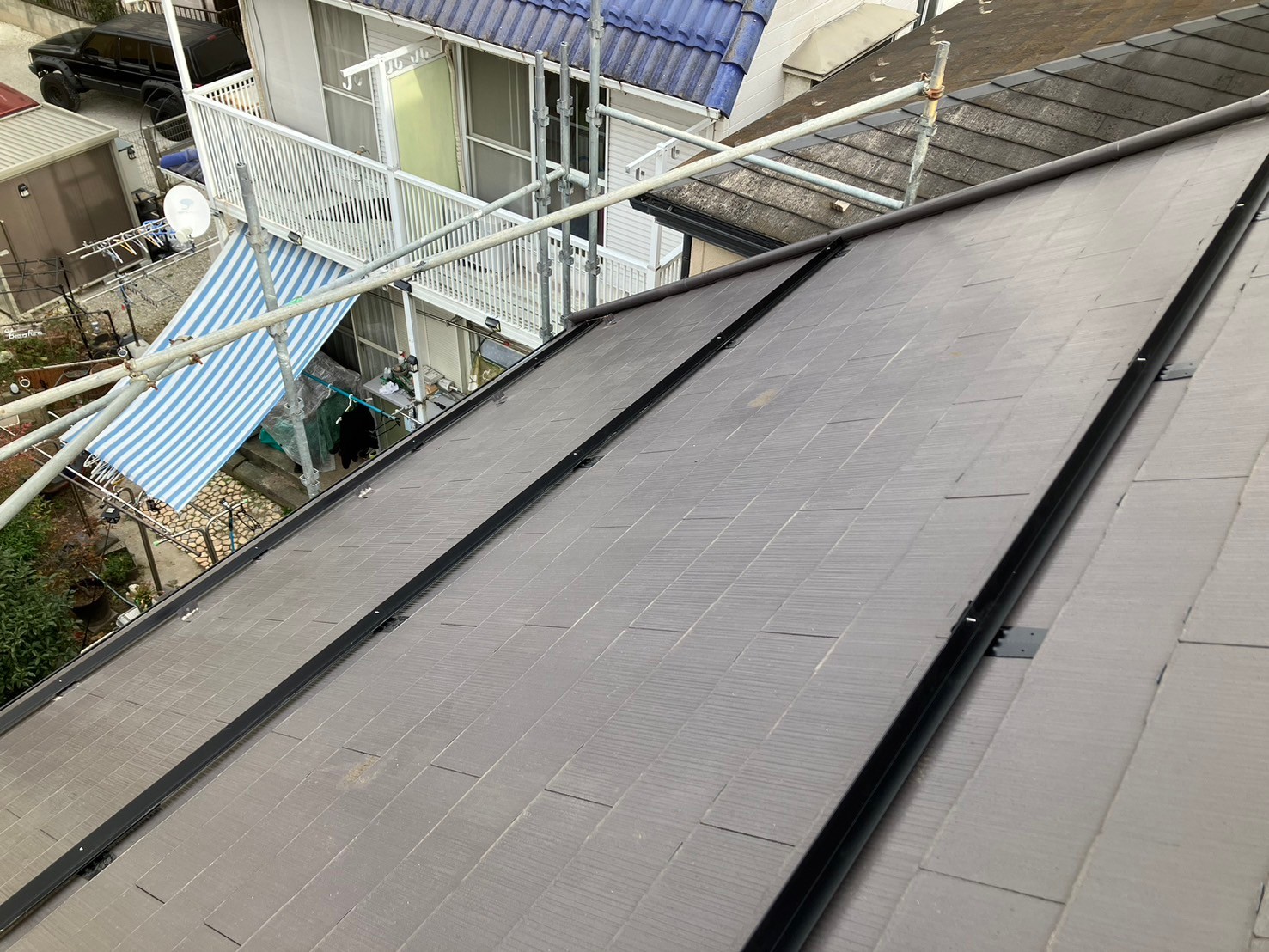 - もともと雪止めはついていたのですが、屋根を塗装してから雪がツルツル滑って落ちるようになってしまって…。こんなことになるなんて思っていませんでした。相談したところ、今ある雪止めにアルミアングルを追加して対策してもらいました。