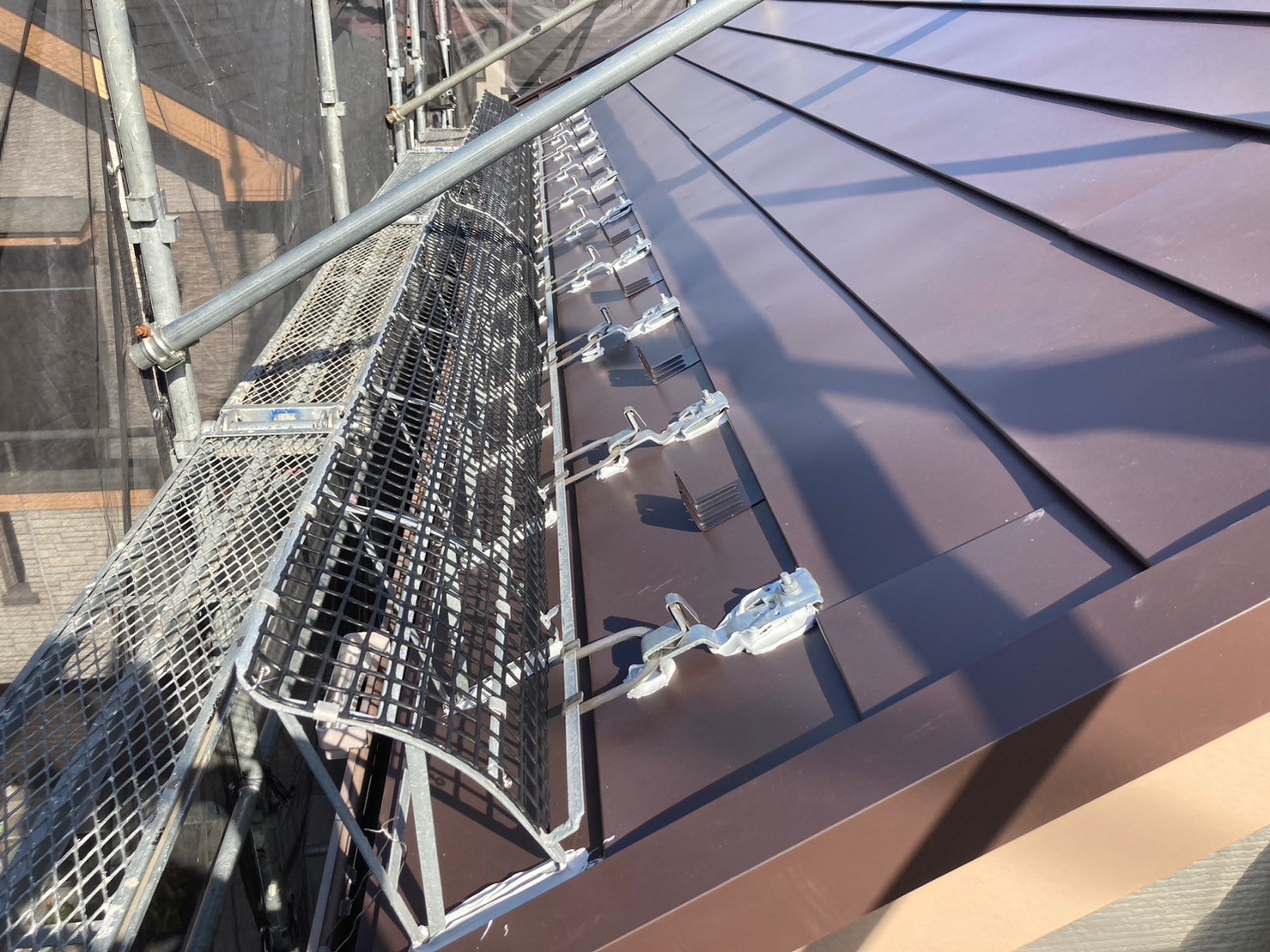 - 屋根を板金製の材料に葺き替えたので、隣家への落雪の可能性があがったので、大型の雪止めがないか探していたらウチノ板金さんのHPに実績があったので相談をした。