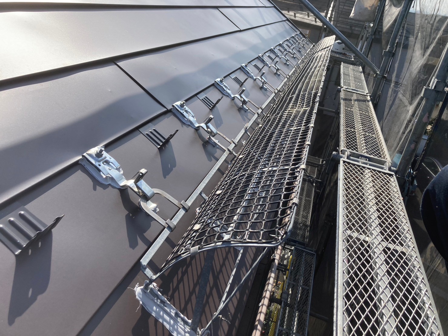 - 大型ネット状の雪止め(落雪ストップ)を取り付け
