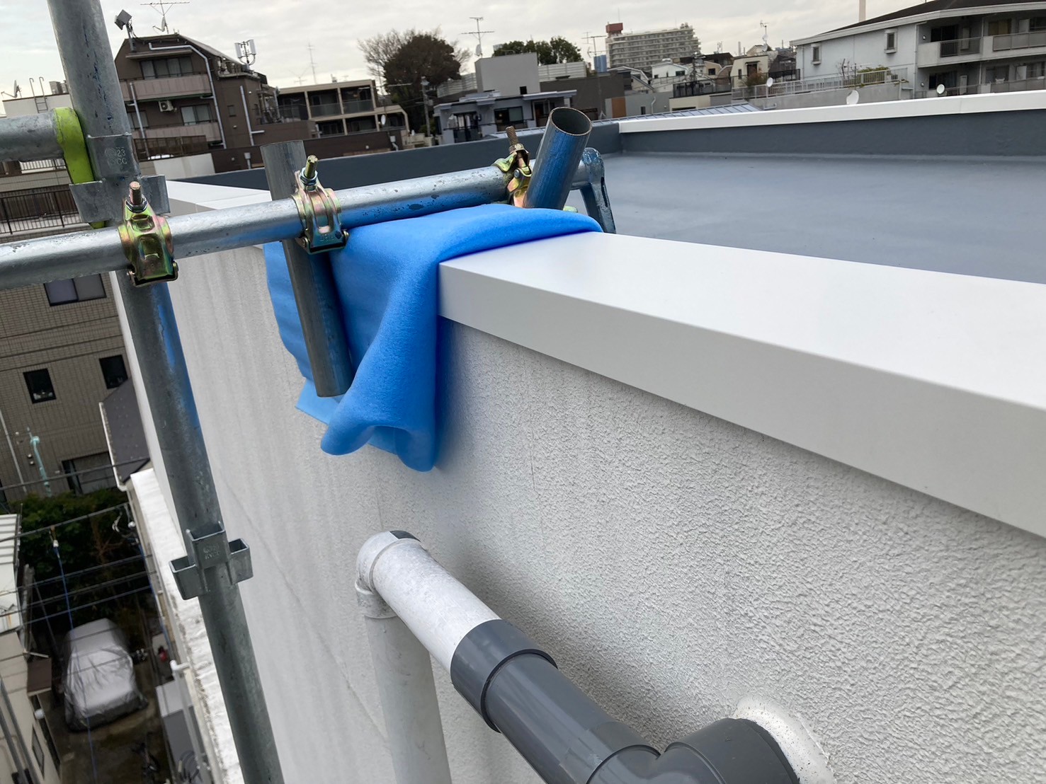 - 雨漏りしていた屋上の床に防水工事をするついでに笠木部分も交換をしたい。防水工事をする際に、笠木板金の撤去も必要なため、板金笠木を新規品に交換工事することをご提案。