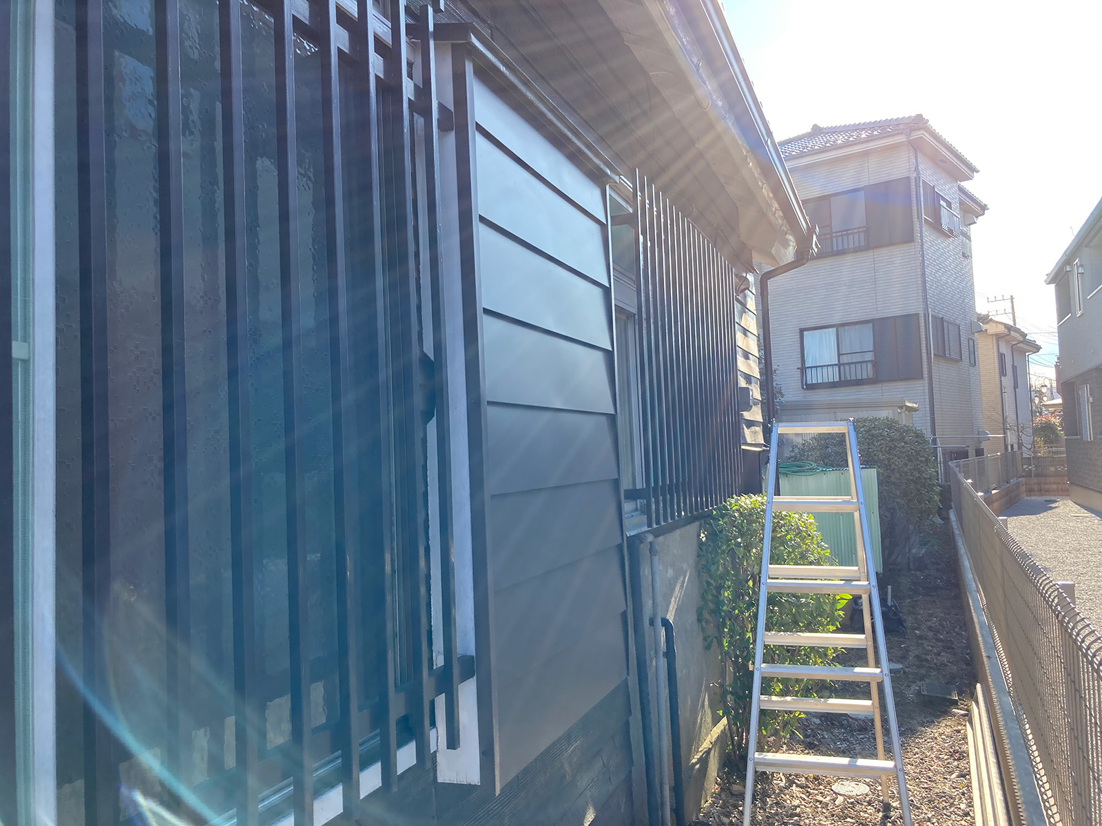 - 戸袋の表面の鏡板の木が波を打ってきたので交換をしたいというご相談。木を交換するのは大変なので、上からガルバリウム鋼板の増し張りをご提案。